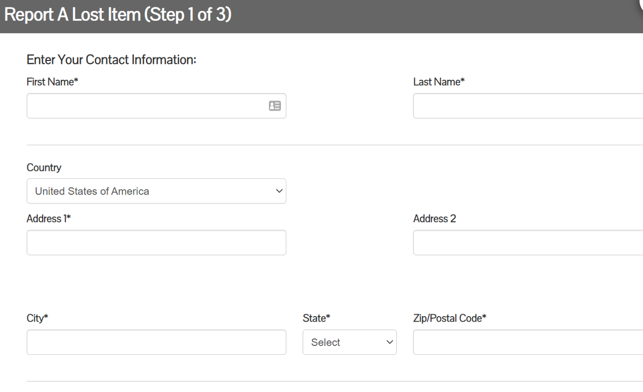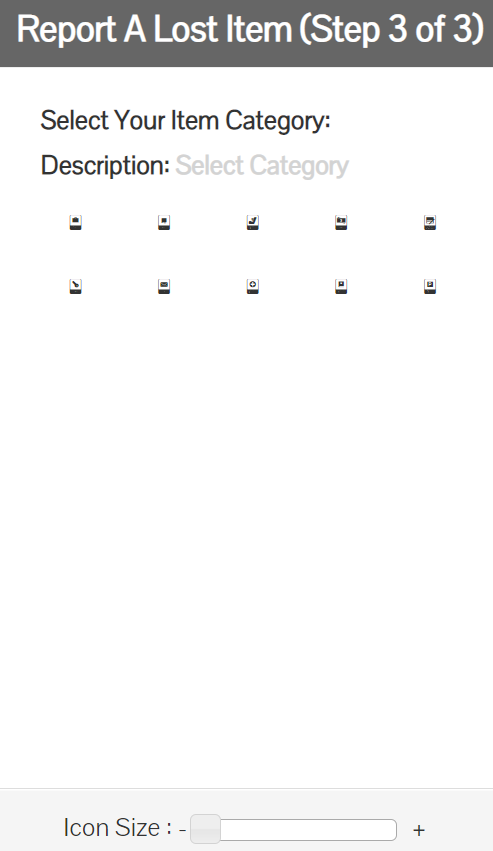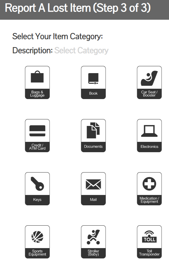 申請は上段真ん中の四角「Report A Lost Item」から行います。