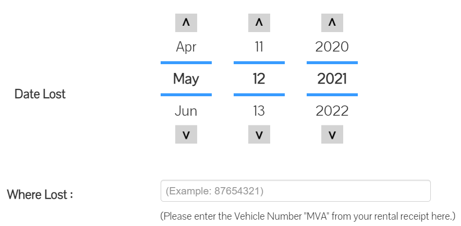失くした日付と場所を入力します。